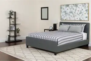 Tribeca King Size Tufted Upholstered Platform Bed in Dark Gray Fabric