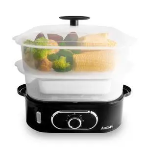 ® Double Food Steamer Basket and Electric Rice Steamer with Easy-Read Water Level and Timer