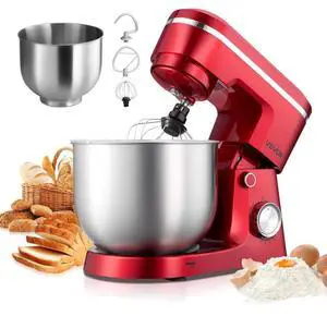 Vevor Stand Mixer, 6 QT Electric Kitchen Mixer, 300W Dough-Mixer, 10 Speeds Tilt-head Food-Mixer with Stainless Steel Bowl, Dough Hook, Whisk, Beater, for Baking, Mixing, Whipping & Kneading, Red- Model #: CJBTMSJBJWDSF7PC4001V1