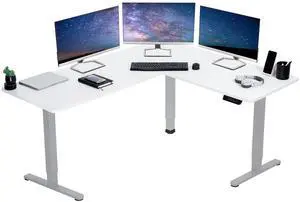 VIVO White Electric 84" x 63" Corner Standing Desk, L-Shaped Workstation