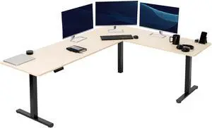 VIVO Light Wood / Black Electric 84" x 63" Corner Desk, L-Shaped Workstation