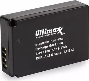 ULTIMAXX Replacement Battery for Canon LPE12 - 1300mah