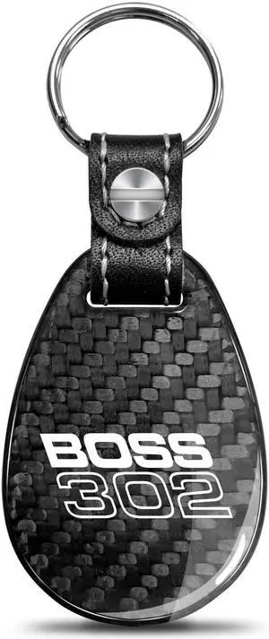 Ford Mustang Boss 302 Real Black Carbon Fiber with Leather Strap Large Tear Drop Key Chain