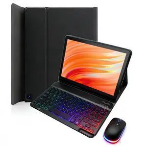 Keyboard Case for Amazon Kindle Fire HD 10&10 Plus (2021&2023) 10.1 inch, 7 Color Rainbow Backlight Detachable Bluetooth Keyboard with Mouse (Black)