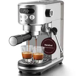 Espresso Machine 20 Bar, Super Compact Espresso Maker Stainless Steel Professional Coffee Machine Espresso with Power Steam & LED Display for Home Barista Latte and Cappuccino Maker-Silver