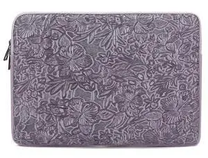 Canvaslove Embossing Floral Pattern PU Leather Laptop Sleeve Case with Pocket (Purple PU, 16 inch)