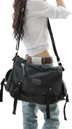 [Upgraded] Vintage Canvas Messenger Bag 13 15.6 17 inches Large Book Laptop Shoulder Bag Women Men New (Black, X-Large)