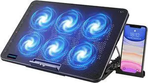 Laptop Cooling Pad, Laptop Cooler with 6 Quiet Fans for 12-17 Inch Notebook Gaming Fan Stable Stand, 7 Height & Wind Speed Adjustable, 2 USB Port & Phone Holder (Black)