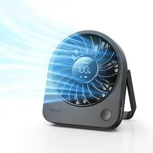 Desk Fan, Turbo Table Fan for Bedroom, 100-Speed Digital Display, Low Noise, 105° Adjustable Tilt, 7.5-inch, Rechargeable Battery, Wall-Mouted Design for Home, Office, Travel Dark Black