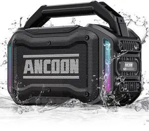 ANCOON Speakers Bluetooth Wireless: 80W(Peak) Loud Speaker with Bass, 20H Playtime, IPX6 Waterproof, Large Jobsite Speakers for Work, Outdoor, Workshop, Garage, Portable Speaker with TWS (Black)