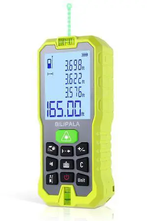Laser Distance Measuring Tool, 50M/165ft Laser Measure, ±2mm Accuracy Laser Distance Meters with Backlit LCD, Measuring Distance, Area, Volume, Pythagorean Mode for Indoor/Outdoor Use(Green Laser)