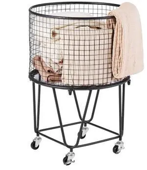 Black Metal Rolling Laundry Hamper Butler Cart Basket with Hanging Garment Rack, Storage Organizer with Mobile Wheels
