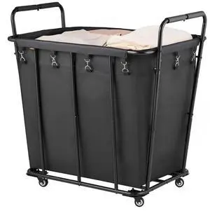VEVOR 3-Section Laundry Basket, Heavy Duty Laundry Hamper Storage Organizer, Laundry Sorter Cart with Heavy Duty Lockable Wheels for Dirty Clothes in Laundry Room Bedroom
