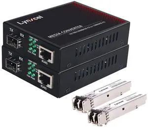 A Pair of 1.25G/s Bidi Gigabit Single-Mode Fiber Ethernet Media Converter with 2PCS Bidi SFP LC Transceiver Module Included, 10/100/1000Base-Tx to 1000Base-SX SMF RJ45 to SFP Slot up to 30KM