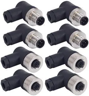 Lonlonty M12 4 Pin Male & Female Right Angle Socket Panel Aviation Wire Connector,12mm Industrial Circular Connector, Outdoor Waterproof IP67,4 Sets