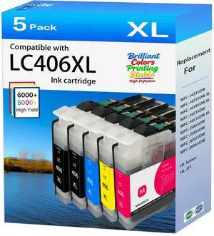 BeOne LC406XL LC406 Ink Cartridges Compatible for Brother Printer MFC-J4335DW MFC-J5855DW MFC-J6555DW MFC-J4535DW MFC-J6955DW MFC-J5955DW MFC-J4345DW HL-JF1(5 Pack,High Yield)