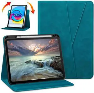 DTTO Rotating Case for iPad (A16) 11th Generation 11 Inch 2025, iPad 10th Generation 10.9 Inch 2022, 360 Degree Swiveling Premium Leather Folio Stand Cover with Pencil Holder, Light Blue