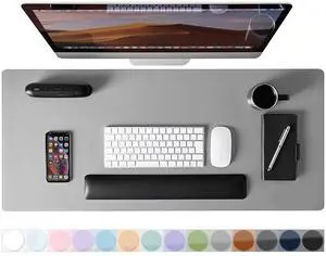 Leather Desk Pad Protector, Mouse Pad, Non-Slip Computer Mat for Desk, PU Leather Office Desk Mat for Home & Office, Waterproof Laptop Desk Blotter for Keyboard and Mouse, Grey (15.7''X31.5'')