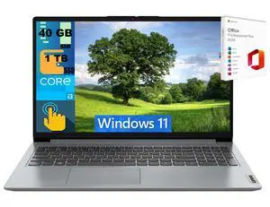 Lenovo IdeaPad 1 15 Laptop, 15.6" FHD Touchscreen, Intel Core i3-1215U Processor 6 Cores Processor, Intel UHD Graphics, 40GB DDR4  1TB PCIe SSD, Webcam, Wi-Fi 6, Windows 11 ,Office 2024 License
