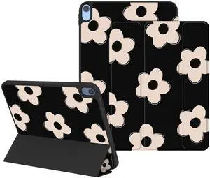 Lornpa Case for iPad (A16) 11th Generation 11 Inch 2025, iPad 10th Generation 10.9 Inch 2022, Protective Case with Pencil Holder, Trifold Smart Stand Cover with Cute Pattern for Girls, Black Flowers