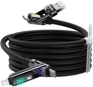 Hichain 4-in-1 Charging Cable 100W, Phone Charger Cord USB C Cable with LED Light, Multi Charger Cable USB-C to Lightning, USB-A/C Fast Charging for iPhone 17/16, iPad, MacBook, Samsung, Switch, 4FT