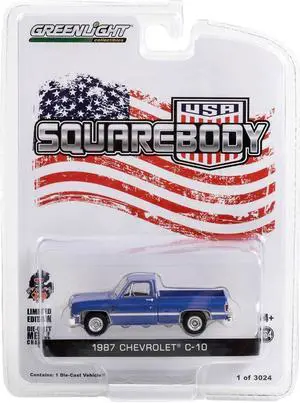 1987 Chevrolet C-10 Pickup Truck Blue "Squarebody USA" Limited Edition to 3024 pieces 1/64 Diecast Model Car by Greenlight