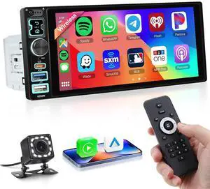 9.0" Wireless CarPlay Screen for Car, Android Auto Screen for Car with Backup Camera, Portable Touchscreen car Stereo with GPS Navigation/Mirror Link/Voice Control/Bluetooth/FM/AUX
