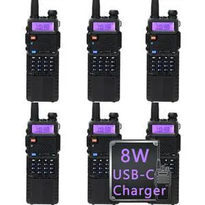 Baofeng UV-5R Dual Band Two Way Radio Handheld Ham Radio Long Range Walkie Talkies Pack of 6 for Hiking Camping Hunting Skiing Trip(Black) with 8W 3800mAh USB-C Charge Battery