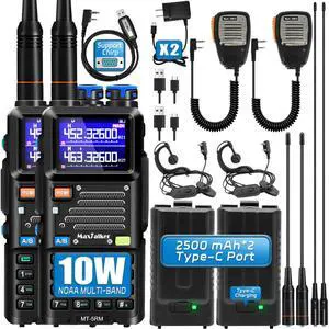 5RM 10W Ham Radio, Long Range Handheld Two-Way Radio with NOAA Weather Receiver, USB-C Rechargeable 2500mAh Batteries, Programming Cable & Upgraded Speaker Mic (2 Pack)
