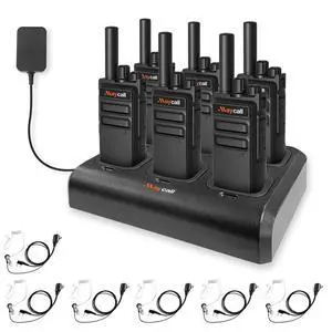 Maycall MC-180 Walkie Talkies 6 Pack with 6 Way Multi Unit Charger Long Range Walkie Talkies with Earpiece Rechargeable 2550mAh Battery, FRS Two Way Radios, 2 Way Radios Lightweight