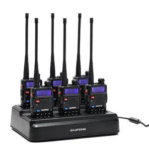 Baofeng UV-5R Dual Band Two Way Radio Handheld Ham Radio Long Range Walkie Talkies Pack of 6 for Hiking Camping Hunting Skiing Trip(Black) with 6 Way Charger