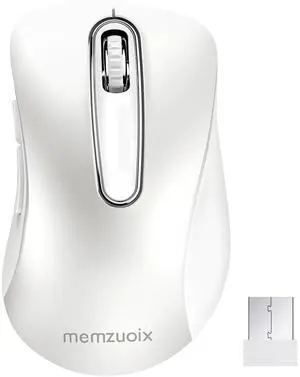 2.4G Wireless Mouse, 1400 DPI Computer Mice with USB Receiver, Portable Wireless USB Mouse Battery Powered Cordless Mice for Laptop, PC, Desktop, 5 Buttons (White)