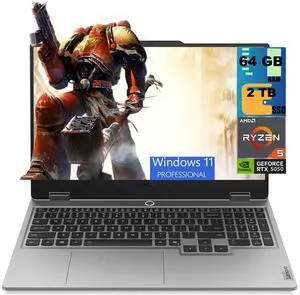 Lenovo LOQ 15 Gaming Laptop, 15.6" FHD 144Hz, AMD 6-core Ryzen 5 220 Processor, NVIDIA GeForce RTX 5050 8GB Graphic, 64GB DDR5  2TB PCIe SSD, White Backlit KBD, Wi-Fi 6, Windows 11 Pro