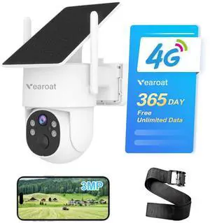 Vearoat 4G LTE Cellular Security Camera Outdoor System, 365 Days Unlimited Data,Wireless Solar Security CameraRemote Monitoring, Motion Sensor, Human Tracking, 360Viewing,2K Color Night Vision