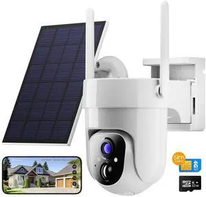 Solar Powered PTZ 4G Camera Outdoor, 1-inch Mini Ball Design, 6MP HD, Warm Light & IR Night Vision, 2-Way Talk, No Monthly Fee (4G)