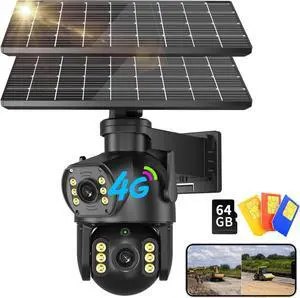 Neye 4G LTE Solar Security Camera 4K with Dual Lens Color Night Vision, Rotating Head, and Two Solar Panels,12000mah Battery,PIR Motion Sensor, 2 Way Talk, Built in SIM Card with 64g sd Card