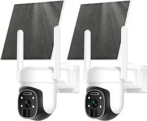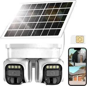 No WiFi Security Camera, 4G LTE Cellular Security Camera, 2K Solar Cellular Cam HD Dual Lens 360° Pan Tilt, Color Night Vision, PIR Motion Detection, IP66 Waterproof Installed SIM (WHITE, DUAL)