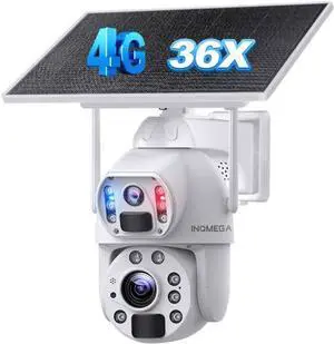 INQMEGA 4G LTE Cellular Security Camera with 36X Optical Zoom, 10W Solar Panel & 20,000mAh Battery, Outdoor Metal IP Camera, Max 128GB SD Support (Card Not Included) White