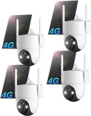 Apone 4G LTE Cellular Solar Security Camera, No WiFi Security Camera Outdoor, 360° View, 2K Color Night Vision, Motion Detection, 2 Way Audio, Motion Alerts, Built in SIM Card (4-Cam Pack)