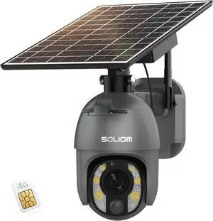 SOLIOM S600 3G/4G LTE Solar Powered Cellular Security Camera Wireless Outdoor, Pan Tilt 360°View Spotlight, 1080p Night Vision, 2 Way Talk, PIR Motion Sensor, No WiFi, US Version, Unlimited Data Plan