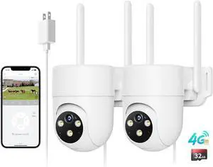LIWAN 4G LTE Cellular Security Camera Wired Outdoor, No WiFi Security Camera, Plug-in for 24/7 Recording, 2K Color Night Vision, 2-Way Talk, Built-in SIM Card and 32G Memory Card, White, 2 Pack