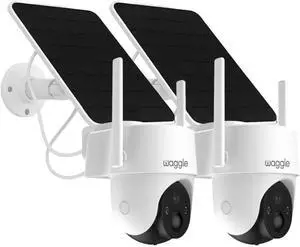 Waggle Pack of 2 4G LTE Solar Security Camera, 2K Wireless Outdoor Camera,No Wi-Fi Needed, 350° Pan 90° Tilt, PIR Detection, AOV, Ultra VisionDay/Night - Subscription Required - Truly Unlimited Data