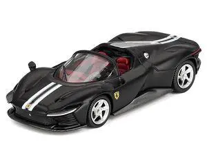 Ferrari Daytona SP3 Matt Black with White Stripes and Red Interior 1/64 Diecast Model by American Diorama