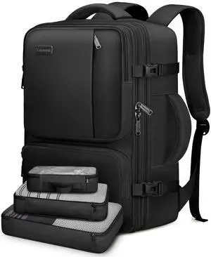 BAGPARKK Travel Laptop Backpack,42L Carry on Luggage, Flight Approved Expandable Backpack,Business Anti Theft Weekender Bags for Women Men, Water Resistant Expandable Backpacks With 4 Packing Cubes