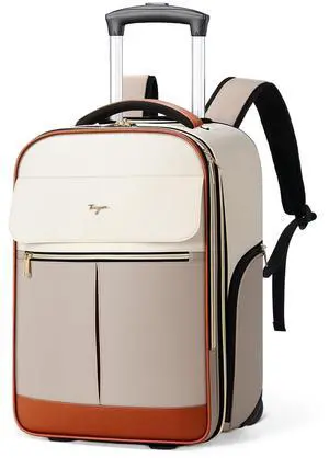 Tonyeee Rolling Backpack for Women, Large Travel Backpack with Wheels Carry on Flight Approved, 15.6 Inch Laptop Wheeled Roller Bag Suitcase for Work Bussiness Weekender (Khaki, M Underseat Size)