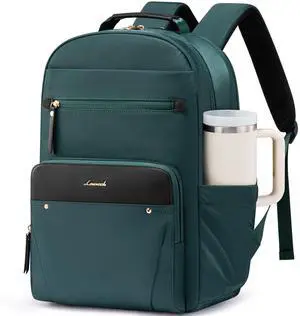 LOVEVOOK Laptop Backpack for Women with Leather Trim & Tumbler Pockets, 15.6" Work Backpack Purse, Travel Personal Item Bag, Carry On Business Computer Bag for Office, School, or Gift, Lustrous Pine