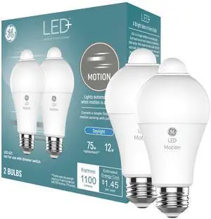 LED+ Motion Sensor LED Light Bulbs, 12W, Outdoor Security Lights, Daylight, A21 (2 Pack)