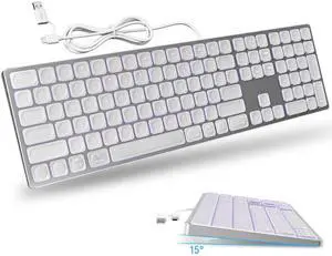 Premium Wired Mac Keyboard with 2 Port Hub - Full Size with Numeric Keypad - Extended USB Keyboard for Mac mini/Pro, iMac, MacBook Pro/Air (Silver Aluminum)