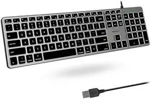 Wired Keyboard for Mac with USB Hub (2X USB-A / 1x USB-C) - Compatible Backlit Apple Keyboard with Dual Interface - Auto OS Detection for Mac, MacBook Pro/Air, iMac, PC, Android, iPad, iOS
