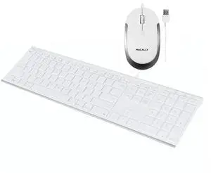 Macally 104 Key USB Wired Keyboard and Mouse Combo with Apple Shortcut Keys for Mac, iMac, Macbook, and Windows PC (MKEYECOMBO), White